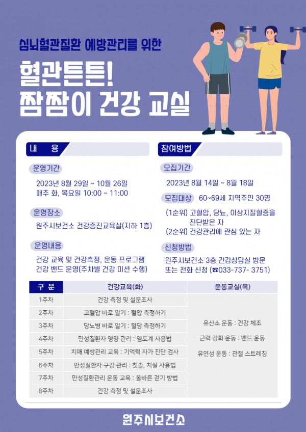원주시 공지사항 원주시 보건소 “혈관튼튼! 짬짬이 건강교실” 프로그램 운영 안내