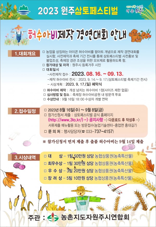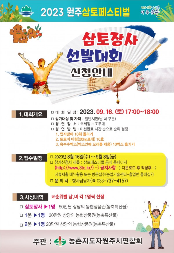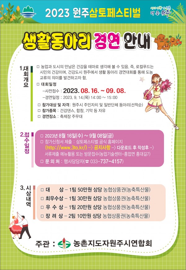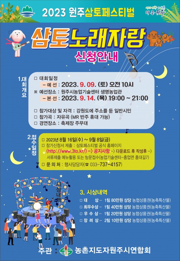 원주시 공지사항 2023년 원주삼토페스티벌 행사 경연 참가자 신청 안내